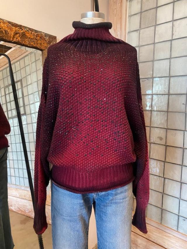 Breaking the rules in regards to stylistic and aesthetic standards is at the core of Avant Toi’s philosophy. Avant Toi captures the true beauty of cashmere and fine Italian knitwear, by masterfully transforming each piece into a work of art. Crafted of a cashmere blend, this turtleneck sweater features stunning hand painted detail and studded effect throughout. Can be worn reversed for an all charcoal look.